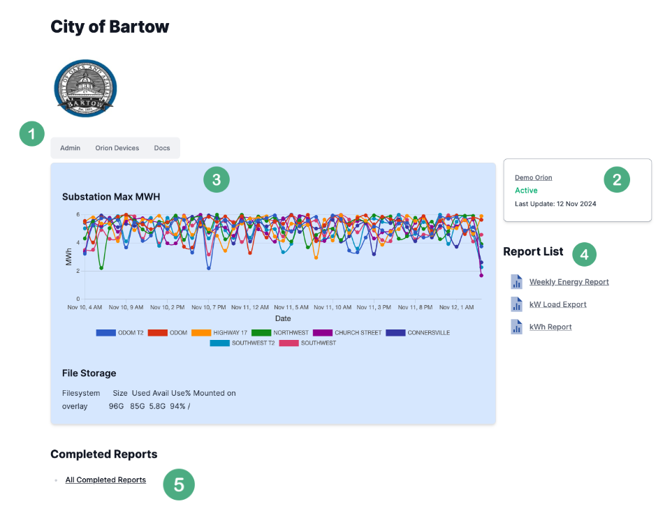 - Docs: Links to documentation for the Orion Reporting App for guidance and best practices.